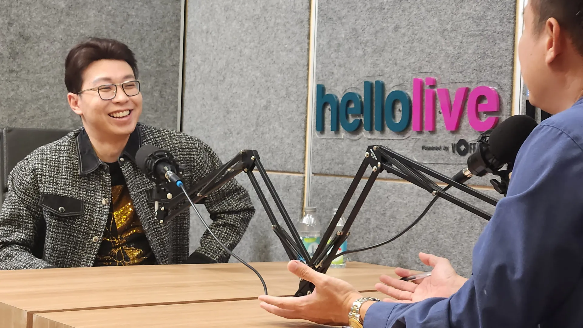 Ruang utama untuk podcast, talkshow, dan rekaman obrolan dengan 3 talent dalam satu frame.